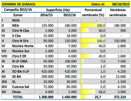 Por último, la región Norte de La Pampa-Oeste de Buenos Aires se encuentra próxima a comenzar con la siembra, principalmente sobre las localidades de Trenque Lauquen y Carlos Casares, donde se espera un aumento en la temperatura del suelo para iniciar con la incorporación de los primeros cuadros de girasol.