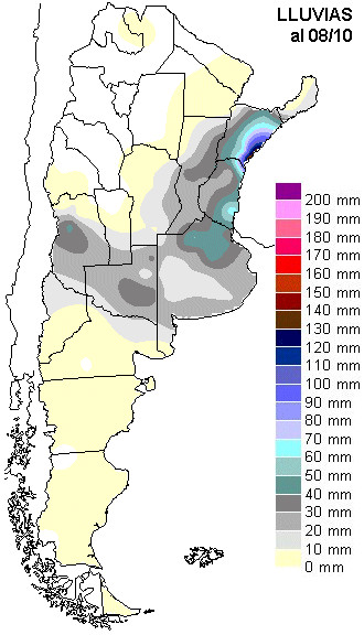 La primera jornada del mes de octubre se presentó muy inestable con lluvias que comenzaron a llegar a final del día y que se prologaron durante la madrugada del viernes para cubrir buena parte de la región pampeana. En muchas localidades de ER, SF y buena parte de BA, solo con este evento los acumulados superaron las marcas de septiembre, lo cual rebela el paso deficitario del pasado mes. Este panorama de cambio se reforzó con lluvias que se concretaron cambiando del martes para el miércoles, observándose al presente una mejora temporaria de las condiciones del tiempo. No obstante esto, el noreste del país y el centro norte de la Mesopotamia están dentro de una importante zona de mal tiempo con epicentro en el sur de Brasil.