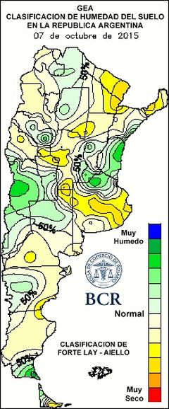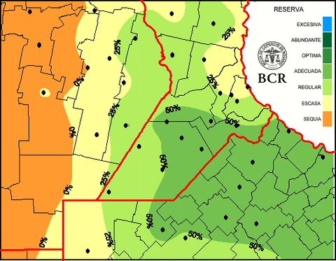 La temperatura no calienta los suelos de la región para dar inicio a la campaña de soja. Se estima que la próxima semana se generalizarían las labores, aunque hay casos aislados en que se apresuraron a sembrar esta semana. La humedad está cercana a lo óptimo pero, como se aprecia en el mapa de reservas, hacia el norte y oeste de la región estaría faltando una lluvia leve para tener óptimas condiciones. Los suelos siguen bajo la amenaza de napas cercanas a superficie. Sigue latente el temor de elevadas descargas en breves lapsos de tiempo. Mientras tanto, las malezas también están bajo la lupa. Anticipándose a su invasión se aplican herbicidas pre-emergentes y, en general, hay buenos resultados en los tratamientos. Sin embargo, aparecen algunos cuadros enmalezados por aplicaciones a destiempo y otros que han sufrido el lavado de herbicidas residuales por el exceso de lluvias en agosto. Hubo casos extremos donde la superpoblación de malezas tuvo que combatirse con una rastra de disco. Los técnicos están concentrándose en los nacimientos y rebrotes de rama negra y, con el aumento de temperaturas, en el yuyo colorado resistente, sorgo de Alepo resistente y otras gramíneas rebeldes de frenar.