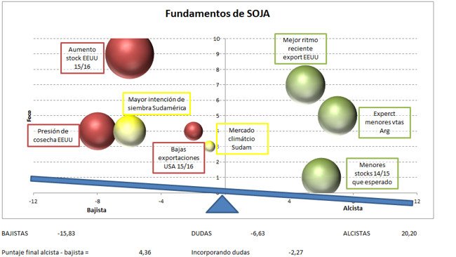 ya no hay dudas de la gran cosecha de EEUU, por lo que el foco pasa a Sudamérica donde se espera menor producción. Sin embargo la presión de cosecha en el norte es siempre un factor limitante. Loclamente a la espera de definiciones sobre derechos de exportación y ROE VERDE