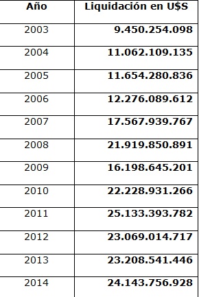 La liquidación de divisas de las empresas del sector en los últimos años fue: