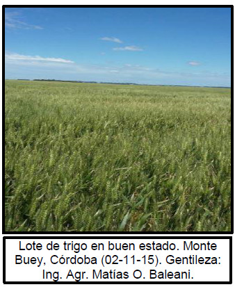 Hacia el sur, en la región bonaerense una gran cantidad de lotes transita etapas de espigazón, mientras que varios cuadros ubicados sobre el sur de la provincia aún se encuentran encañando. En términos generales la oferta hídrica para el cultivo es muy buena, aunque las temperaturas frescas registradas durante los meses previos demoraron del desarrollo vegetativo del cultivo. En estas regiones las prácticas de fertilización y los controles sanitarios también fueron variables, pero en general fueron relevados con mayor frecuencia en comparación a las regiones ubicadas sobre el centro y norte del área agrícola nacional, en donde el cereal fue implantado con la intención inicial de ser solo un cultivo de cobertura.