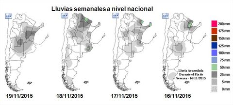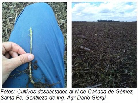 La fortísima granizada que circundó a Rosario dejó lotes 100% perdidos de sojas, maíces y trigos que aguardaban la cosecha. Fueron literalmente “picados” por el intenso meteorito. El Dr. J. L. Aiello alertó “hay que estar preparados para una campaña con pulsos de lluvias convectivas importantes y tener en cuenta que esto aumenta la probabilidad de eventos de granizo”. Con los acumulados de la semana pasada se veían algunos lotes anegados y hay temores al efecto que tendrán las recientes lluvias. El avance de siembra cubre el 74% del área intencionada de soja de primera, pero estará paralizada los próximos días. El trigo está en su etapa final. Lotes del sur de Santa Fe que esperaban excelentes resultados quedaron reducidos a sus tallos. Hay temor de que las lluvias provoquen “lavado de granos” y afecten la calidad. Las expectativas continúan en 37 qq/ha. El maíz temprano tuvo su primer traspié con el granizo. En zonas no afectadas el aumento de las temperaturas y las lluvias alientan un crecimiento vegetativo exuberante.