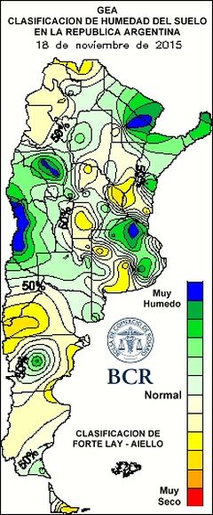 La tarde del miércoles (18/11) borró muchos lotes que estaban a días de la cosecha en los departamentos cercanos a Rosario. La campaña que había resultado tan difícil desde el inicio y se recuperó sobre el final por las excelentes condiciones de llenado volvió a sucumbir. Esta vez el granizo golpeó con más intensidad y abarcó una extensión mayor a lo que suele afectar. En las zonas no afectadas, el temor de las lluvias a cosecha está latente: el cultivo es vulnerable a perder el buen peso de grano que logró por las temperaturas frescas de la etapa de llenado. Las lluvias fuertes podrían lavar las proteínas del grano y afectar la calidad general del mismo. Se mantienen los pronósticos de rindes medios en 37 qq/ha. La superficie triguera está entre pleno llenado y madurez fisiológica. La condición es muy buena en el 50% de los cuadros.
