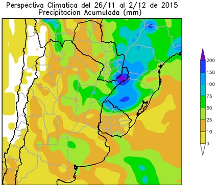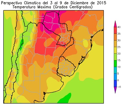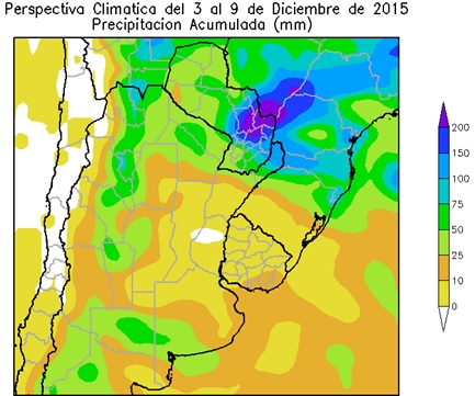 Perspectiva Agroclimática del 3 al 9 de Diciembre de 2015: Temperaturas elevadas y precipitaciones de variada intensidad, seguidas por un moderado descenso térmico