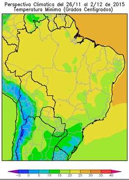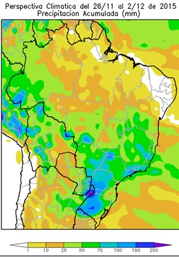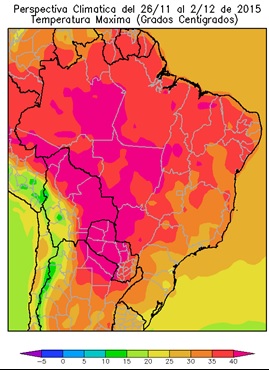 Perspectiva Agroclimática para Brasil del 26 de Noviembre al 2 de Diciembre de 2015: Calor, acompañado por precipitaciones de variada intensidad, seguidos por un marcado descenso térmico