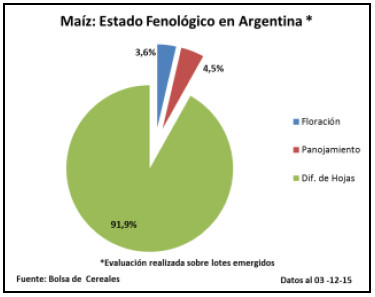 Los mayores progresos acumulados a nivel nacional se encuentran en la franja central, más específicamente en las zonas Centro-Este de Entre Ríos, Norte de la Pampa-Oeste de Buenos Aires y Centro de la misma provincia. Sobre la región Centro-Este de Entre Ríos los cuadros más adelantados tienen entre 3 y 4 hojas desplegadas y se encuentran en condiciones de buenas a muy buenas, no obstante comienza a notarse un leve déficit hídrico en la capa superficial del suelo.