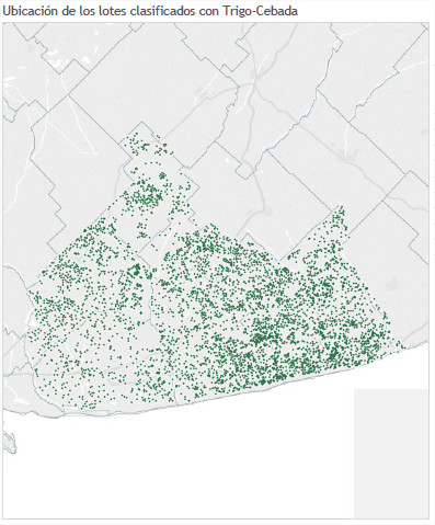 Los trabajos de teledetección realizados con Landsat 8 sobre la zona de Tres Arroyos, muestra que este año hay 850 mil ha de trigo y cebada, esto muestra 80 mil ha más que el año pasado. Sin embargo, se estima que el área de cebada pasó de 330 mil a 510 mil hectáreas en este año, o sea un incremento del 54%. Se confirmó mediante este estudio que el área triguera es de 340 mil ha coincidiendo con las estimaciones previas. Las altas variaciones en las condiciones de los cultivos y los resultados que se esperan tienen que ver con los problemas de falta de agua y también con los problemas de nutrientes que en muchos casos no pudieron ser repuestos. En esta zona los rendimientos esperados están en torno a los 36 a 37 qq/ha.
