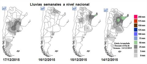 El granizo, las tormentas de viento y lluvias intensas del fin de semana (12/12 y 13/12) confirman una campaña en la que serán frecuentes y de alto impacto este tipo de eventos. Las áreas afectadas fueron el sur de Santa Fe -Carlos Pellegrini y Bouquet- y el este de Córdoba -Monte Buey, Pascanas y Etrurias-. Hoy (17/12) hubo caída de granizo en Bengolea. Las lluvias continuarían hasta la noche dejando 30 a 60 mm en la región central. Los problemas de excesos ralentizan las labores en todos los cultivos. El trigo se cosecha con lentitud; sólo 75% del área núcleo cubierta, con un noroeste bonaerense que recién arranca. El rinde promedio sigue estimándose en 37 qq/ha, con alta variación según zona. Hay problemas con la proteína del grano en el centro-sur de Santa Fe y este de Córdoba. La siembra de soja de primera está casi terminada con el 98% de avance y la segunda se lleva implantado el 70%. El 30% del maíz de primera, sembrado en fecha, a plena floración en excelentes condiciones.