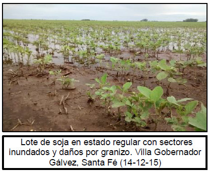 Finalmente, lotes puntuales sembrados en fechas tempranas en las regiones Núcleo Norte y Sur inician etapas de floración, bajo muy buenas condiciones hídricas. Ambas regiones se encuentran próximas a culminar la siembra, levemente demoradas por los excesos hídricos acumulados durante los últimos meses, pero también retrasadas por las recientes lluvias registradas en los días previos a la presente publicación. También se están realizando resiembras puntuales en lotes afectados por granizo o por encharcamientos en relieves bajos. Según nuestro informe climático durante los próximos días continuarían las precipitaciones sobre el centro-este de la región agrícola, agravando los excesos hídricos en las regiones núcleos y en sectores rivereños del Centro-Norte de Santa Fe.