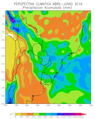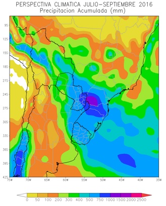 El invierno 2016 continuará mostrando una gradual disminución de los efectos de “El Niño”, en la mayor parte del área agrícola, a la vez que se notará un correlativo fortalecimiento de los vientos del sudoeste, que cruzarán la Cordillera de los Andes, produciendo vigorosas tormentas, y extenderán su acción hacia las áreas agrícolas de los países limítrofes. Este proceso producirá en escenario climático con notables contrastes.