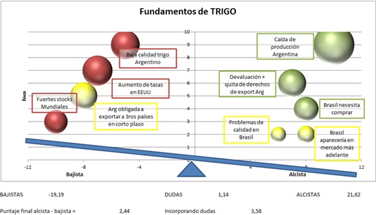 El trigo sigue en tanto atrasado respecto a los valores de paridad de exportación. Esta semana tanto analistas externos como internos incrementaron la estimación de producción local marginalmente, pero también hicieron foco en que la calidad de los granos es baja y que esto podría llevar a problemas en la exportación.