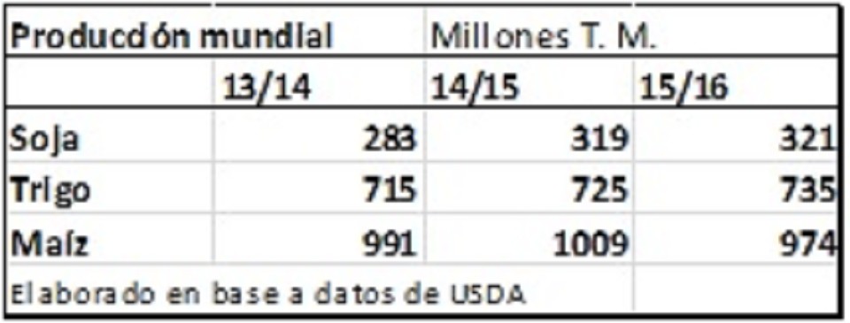 A su vez, según el departamento norteamericano, la producción de granos del mundo totalizaría un volumen de 2467,50 millones de toneladas (2015/16). Es decir que la estimación es menor a la del mes anterior que establecía la cantidad de 2472,80 millones.