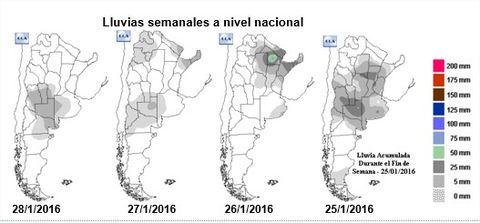 La tendencia de moderadas a escasas precipitaciones de las últimas semanas en GEA continuará la semana entrante. Lejos de abastecer la demanda hídrica, los pronósticos indican lluvias inferiores a los 20 mm y se concentrarían el viernes (29/1).