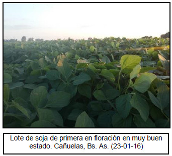 Sobre la provincia de Córdoba, el cultivo se encuentra en condiciones de buenas a muy buenas bajo un panorama hídrico adecuado en la mayoría de los casos, con eventos aislados de excesos así como déficit de precipitaciones. Por otro lado, se están registrando ataques del complejo de lepidópteros, los cuales están siendo controlados en el caso que se considere necesario. En estas regiones la soja de primera se encuentra entre los estadíos de floración (R2) y diferenciación de vainas (R3-R4) en los cuales comienza a definir el rendimiento.