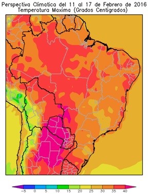 Al comienzo de la perspectiva la mayor parte del área agrícola del Brasil, recibirá vientos provenientes del sector norte / nordeste, que aportarán abundante humedad atmosférica y nubosidad, manteniendo temperaturas máximas superiores a lo normal. Paralelamente, gran parte del área agrícola del Brasil registrará precipitaciones abundantes a muy abundantes, con varios núcleos de tormenta localizadas severas, que se alternarán con amplias franjas de valores moderados a escasos.
