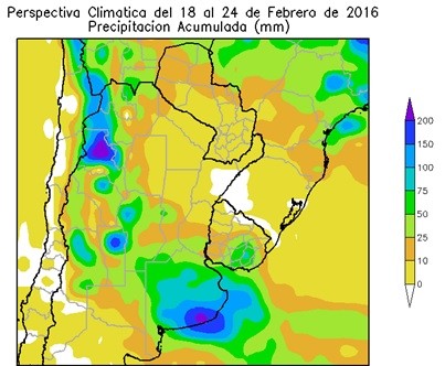 Al comienzo de la perspectiva, los vientos del norte dominarán el norte y el centro área agrícola, causando una intensa ola de calor, aportando abundante humedad atmosférica y nubosidad. Paralelamente, se producirá el paso de un frente de tormenta, que producirá precipitaciones de variada intensidad, con vigorosos focos de tormenta, sobre gran parte del área agrícola, a excepción del centro-norte y el extremo y el sudoeste de La Argentina, el oeste y el centro del Paraguay y gran parte del Uruguay, que recibirán valores moderados a escasos. El este del NOA, la Región del Chaco, la mayor parte de Santa Fe, el norte de Córdoba, el oeste y el sur de Corrientes, el noroeste de Entre Ríos y la mayor parte del Paraguay, registrarán temperaturas máximas superiores a 40°C.