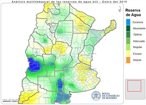 Las reservas del suelo según las necesidades de una pradera permanente para enero del 2015, enero del 2016, y primeras dos semanas de febrero del 2016: