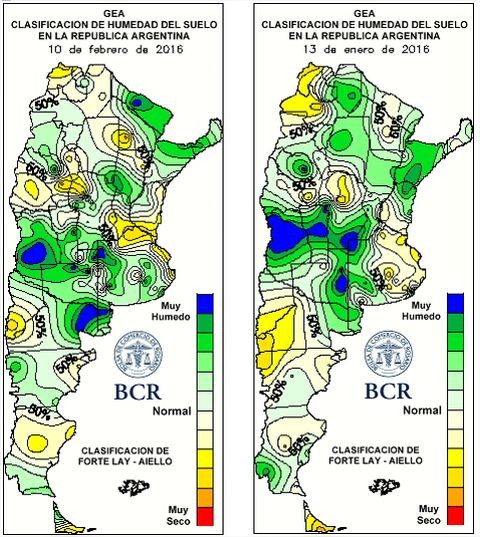 De todas formas las zonas más afectadas están bastantes restringidas y la llegada a tiempo de las lluvias evitó que se expandiera el deterioro. Contrariamente las zonas presionadas por la cercanía de las napas, que estaban en niveles muy cercanos a la superficie, no mostraron síntomas de estrés termohídrico, y se observan en condiciones más cercanas a la normalidad. Estos cambios pueden observarse en la imagen actualizada de agua en el suelo para Argentina comparada con la situación de hace un mes.