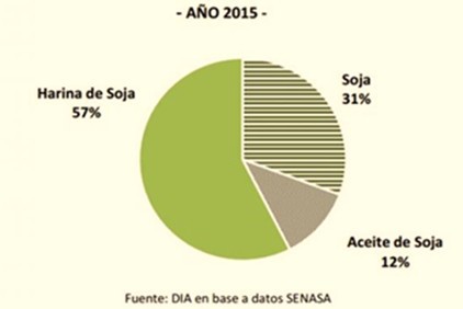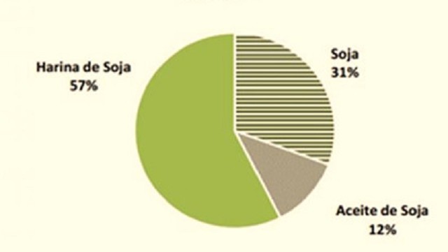La harina y los pellets derivado del aceite de soja, son conocidos comúnmente como "harina de soja". Este producto es el principal bien de exportación de Argentina.