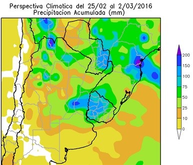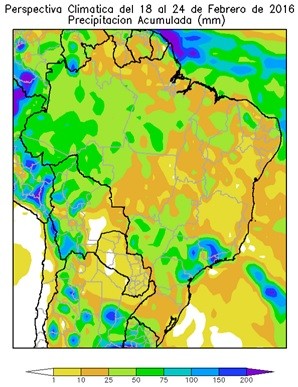 Al comienzo de la perspectiva los vientos cálidos del norte se adueñarán de la mayor parte del área agrícola del Brasil, aportando abundante humedad atmosférica y nubosidad. Paralelamente, gran parte del área agrícola del Brasil registrará precipitaciones abundantes a muy abundantes, con varios núcleos de tormenta localizadas severas.