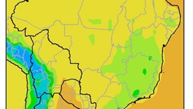 La mayor parte del área agrícola brasileña, registrará precipitaciones moderadas a muy abundantes (10 a 75 mm), con un foco de tormentas con precipitaciones superiores a 100 mm), se ubicará sobre el sudeste de Mina Gerais, el norte y el sudeste de Sao Paulo. Solamente, el nordeste de Mato Grosso, el sudoeste de Tocantins, el norte de Goias, el centro de Bahía, la mayor parte de Mina Gerais y el este de Santa Catarina, observará precipitaciones escasas (menos de 10 mm).