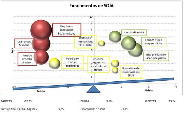 En el caso del maíz además de iniciar con un stock más alto fruto de un ciclo muy bueno productivamente en 2015, el área crecería en unas 800.000 ha, con lo que aumentaría la producción. Si bien la demanda estaría más activa, esto no evitaría que los ya de por sí elevados stocks crezcan todavía más.