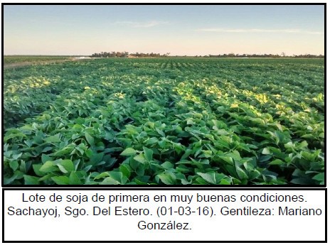 Asimismo, se observa una mayor presión de malezas difíciles de controlar como es el yuyo colorado. En el NOA la soja de primera transita estadíos que van desde diferenciación de vainas (R3) hasta llenado de grano (R5) y las lluvias ocurridas durante esta semana proveyeron agua suficiente para mantener las condiciones de desarrollo favorables para el cultivo. Por otro lado, a la presencia del picudo negro de la soja se le suma una presión creciente del complejo de chinches que podría afectar al cultivo de no ser controlada. Para la vecina región del NEA la soja de primera transita estadíos que van desde floración (R2) hasta llenado de grano (R5). Asimismo, sobre sectores del oeste chaqueño, si bien las últimas precipitaciones ocurridas fueron abundantes, el cultivo no se ha recuperado totalmente de lo que fue el déficit hídrico de enero y parte de febrero.