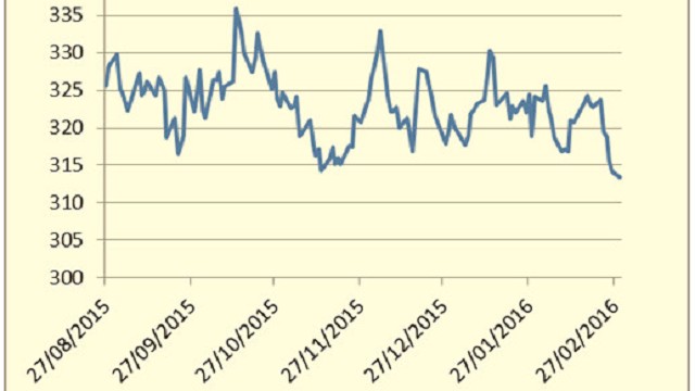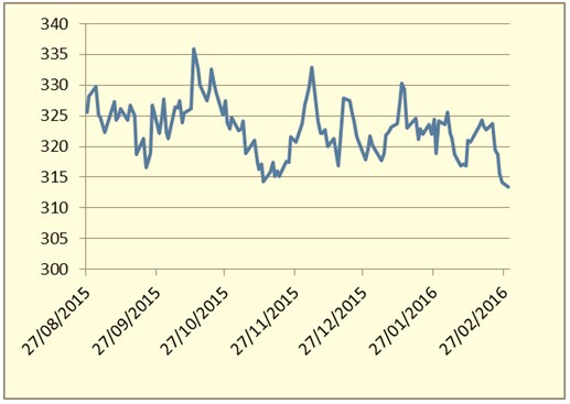 El cuadro que sigue muestra la evolución del precio a lo largo de 2015 y en los dos primeros meses del actual año.