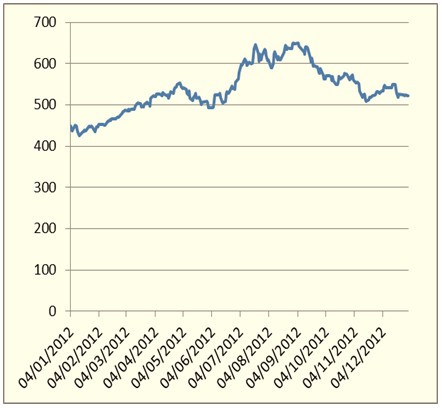 La historia reciente de los precios internacionales de la soja marca niveles excepcionales en los primeros días de septiembre de 2012.