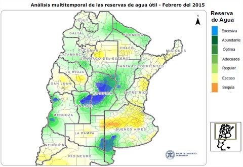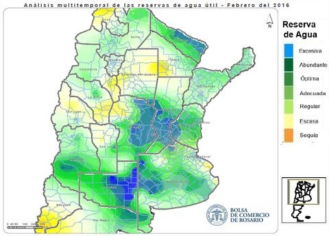 El fin de febrero encontró a las provincias del centro del país sobreofertadas de agua y revertieron el déficit hídrico que se arrastraba desde enero deteriorando el cultivo. Acentuada por el efecto “Niño”, la atípica dinámica atmosférica centró su actividad de intensas lluvias en el centro de la Región Pampeana a partir de la 2° quincena de febrero, tras los ingresos de aire muy húmedo y caliente desde el trópico. El centro y sur de Santa Fe, y el centro de Córdoba recibieron acumulados que superaron los 300 mm, encabezando las marcas máximas de precipitaciones de los últimos 50 años. Este evento llegó a alcanzar a sectores de la provincia de Entre Ríos. Durante la primera semana de marzo, un reciente frente de baja presión en el océano Atlántico desplazó el frente establecido hacia otros sectores menos afectados, como el sur y el sudeste bonaerense y hacia el oeste de Córdoba y el norte del país.