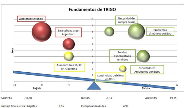 Finalmente tenemos al trigo, y aquí no tiene tanto sentido detenernos en los fundamentos que hacen a Chicago: perspectivas secas, y heladas que habrían dañado a los cultivos, junto con menor intención de siembra, tanto en EEUU como en Canadá. El mercado es más bien regional, y lo que todos nos preguntamos es si Brasil aparecerá, cuando y si se llevará el trigo de baja proteína de Argentina.