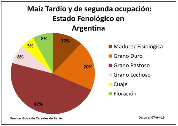 Sobre el extremo norte del país ya comenzaron a recolectarse lotes de forma aislada y la condición hídrica que predomina varía entre regular a mala tanto en la región NEA como NOA. En ambas zonas aún se relevan cuadros que transitan etapas finales del llenado del grano y que seguramente registrarán mermas sobre sus potenciales de rinde a cosecha.