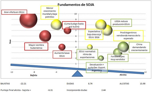 Todos estos interrogantes se pondrán sobre la mesa en el informe del USDA de mayo, que deberá presentar los números para la campaña nueva 2016/17, no sólo del hemisferio norte, donde están a punto de sembrar, sino de los locales. En ese sentido, el reporte del Agregado Agrícola en Argentina habla de una caída de área de 650.000 ha., lo que llevaría la producción a una contracción de 6 mill.tt. para quedar en 54 mill.tt. Es posible que el USDA esté siendo prudente con las variaciones de las que estamos hablando, sobre todo porque si la variación de área estuviera más cerca de lo que nosotros comentamos, la caída de producción al menos se duplicaría, y el impacto en precios sería mayúsculo. Es comprensible al tratarse de un organismo tan consultado y faltando tanto para que las decisiones finales se cierren, estemos en esta situación.