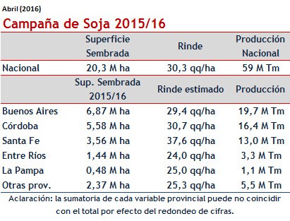 En el cuadro que sigue se muestran los datos estimados detallados por provincia, mientras que para Entre Ríos se utilizan los datos de SIBER (Bolsa de Cereales de Entre Ríos).