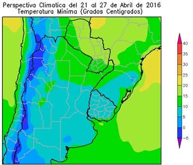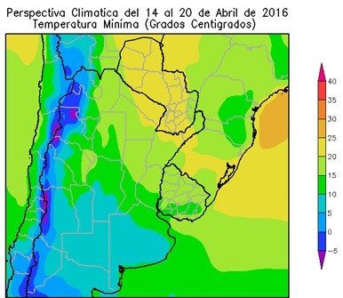La perspectiva comenzará, con la entrada de aire frío procedente del noroeste, produciendo un marcado descenso de la temperatura, debajo de lo normal para la época. Posteriormente, los vientos rotarán al sur, trayendo condiciones de tiempo seco con temperaturas máximas dentro de lo normal. El norte del área triguera, el norte del cinturón maicero y el nordeste de la Región del Sudeste observarán temperaturas mínimas inferiores a 0º.C, con focos con valores inferiores.