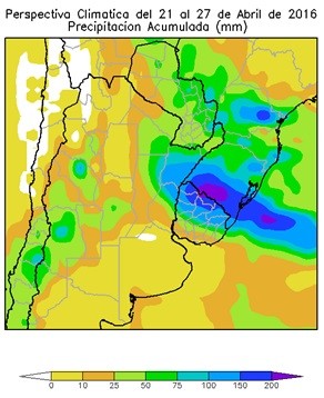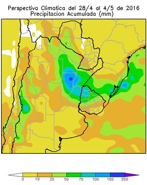 La mayor parte del área triguera, la mayor parte del cinturón maicero, la mayor parte del Delta y la mayor parte de la Región del Sudeste, observarán precipitaciones entre moderadas a muy abundantes, manteniendo la humedad del suelo entre abundante a excesiva, para los cultivos de verano.