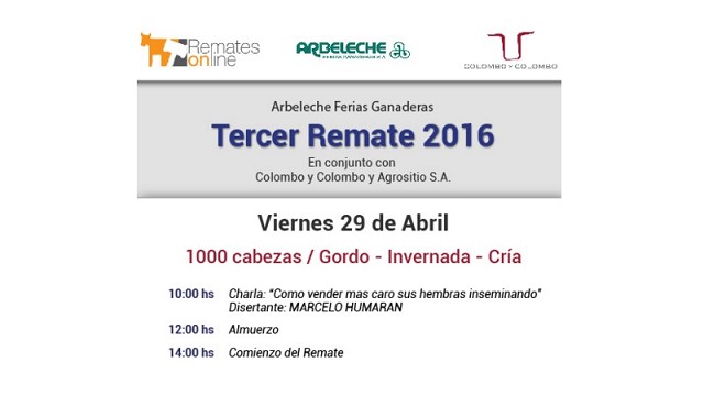 Para mayor información del remate que se realizará el viernes 29 de abril, puede remitir un correo a hacienda@agrositio.com o registrarse aquí para recibir bonificaciones especiales http://remates.agrositio.com/home.php?remate_id=105