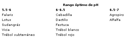 Tabla 2. Requerimientos de pH de diferentes especies forrajeras.