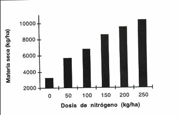 Figura 1. Respuesta a la fertilización nitrogenada en agropiro (aplicado al inicio del aprovechamiento primaveral)