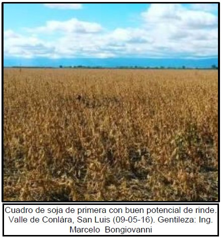 La recolección de cuadros sobre el norte del país no registró avances importantes debido a lloviznas constantes, tanto en la zona NOA como así también en la región NEA. En cambio, sobre el extremo opuesto de la región agrícola, la cosecha avanzó en Buenos Aires y La Pampa. Puntualmente, en la región Norte de La Pampa – Oeste de Buenos Aires la cosecha cubrió el 58,2 % del área apta, entregando un rinde de 38,3 qq/Ha, muy por encima a las expectativas iniciales e incluso al máximo rendimiento regional de 32 qq/Ha registrado durante el ciclo 2007/08. En paralelo, la región Centro de Buenos Aires también alcanzó un progreso de cosecha del 56 % del área apta registrando un promedio de 35,4 qq/Ha, muy por encima al máximo histórico de las 15 campañas previas (máximo rinde período 2000/01 al 2014/15: 31 qq/ha durante el ciclo 2004/05).