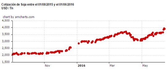 Pese a todo, desde hace unos meses, los precios de los commodities agrícolas revelan una tendencia creciente que se fundamenta en la caída de la producción esperada por los problemas climáticos de (lamentablemente) Argentina y de Brasil.
