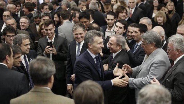 Macri participó del 162°aniversario de la Bolsa de Cereales de Buenos Aires y se encontró con un auditorio que no sólo lo hizo sentir local, sino también con un discurso del presidente de la entidad, Ricardo Valderrama, que destacó los indicadores que muestran el despegue del sector tras la rebaja de las retenciones y la eliminación de las trabas para exportar. "Lo hicimos porque creemos en el campo, y el campo confió en nosotros. Este es el comienzo", dijo el Presidente, que asistió acompañado por el ministro de Agroindustria, Ricardo Buryaile.