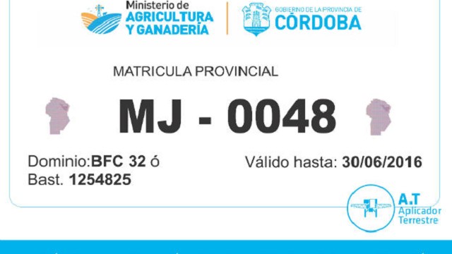 El Ministerio de Agricultura y Ganadería de la Provincia, a través de la Dirección General de Fiscalización y Control, informa que para las habilitaciones del período 2016/2017 de máquinas aplicadoras terrestres de productos fitosanitarios, reemplazará el certificado que se venía expidiendo por una oblea identificatoria.