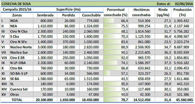 superficie a la espera de las cosechadoras se ubica en la provincia de Buenos