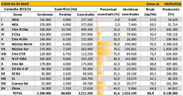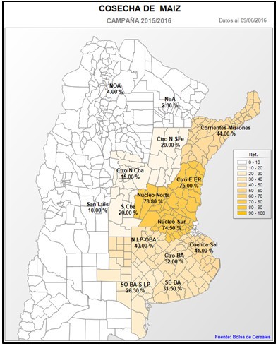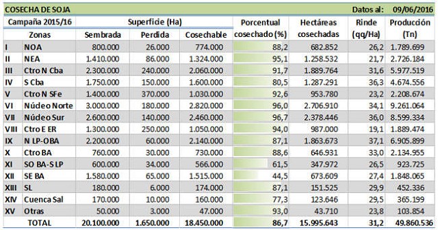 Luego de haber cerrado la campaña productiva 2015/16, se realizó un nuevo análisis de datos el cual entregó resultados mucho más positivos que los estimados durante la campaña. A nivel nacional se estima una nueva producción para la campaña 2015/16 de 4,8 MTn. La misma se basa en un nuevo rendimiento promedio nacional de 45,8 qq/Ha, +9,6 % en comparación a nuestra estimación previa y en pérdidas de superficie -11,5 % menores a las estimadas previamente. Estas diferencias se localizan sobre la provincia de Buenos Aires y principalmente sobre la región Sudeste de Bs. As. que ha terminado la cosecha con un rendimiento record histórico zonal de 51,5 qq/Ha. Esta elevada productividad se debe a factores tales como: la incorporación de materiales de siembra más productivos, el manejo eficiente del cultivo por parte de los productores y las condiciones climáticas propicias durante el ciclo del mismo.