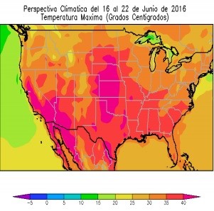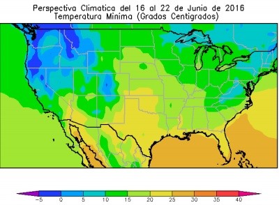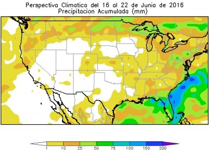 Perspectiva Agroclimática para los EE.UU. del 16 al 22 de Junio de 2016: Precipitaciones escasas y marcado descenso térmico, seguidos por un lapso muy cálido