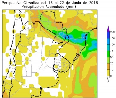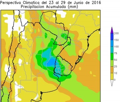 Perspectiva Agroclimática del 23 al 29 de junio de 2016: Moderado ascenso térmico y precipitaciones sobre el nordeste y el centro -este del área agrícola seguidos por el descenso de la temperatura
