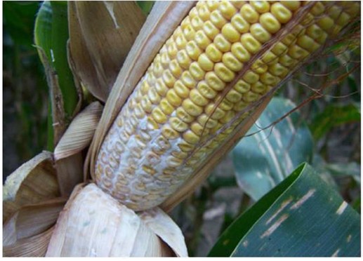 Stenocarpella maydis (Diplodia) en la base de una espiga de maíz