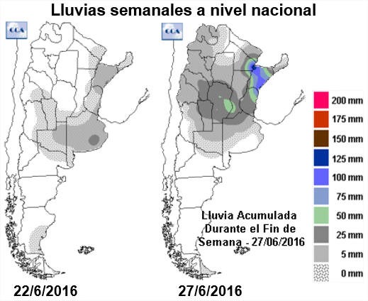 pasada que dejaron en Córdoba 50 a 70 mm, o los 20 a 40 mm en el sur de Santa